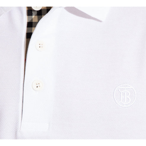 Burberry Branded Circle Logo White Polo Shirt. Elevate your style with the Burberry White Polo Shirt. This iconic White polo shirt from Burberry is not only fashionable, but it also offers a comfortable fit and premium quality. Perfect for any occasion, this shirt will make you stand out and feel confident.. Burberry White Polo Shirt, 100% Cotton. Button Closure At The Neck, Collared Neck. Branded Pattern Under Button Flap. Style: 8055229 Eddie