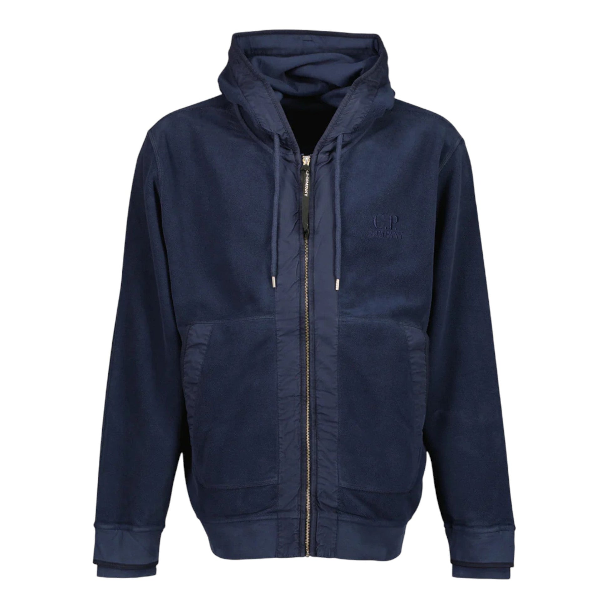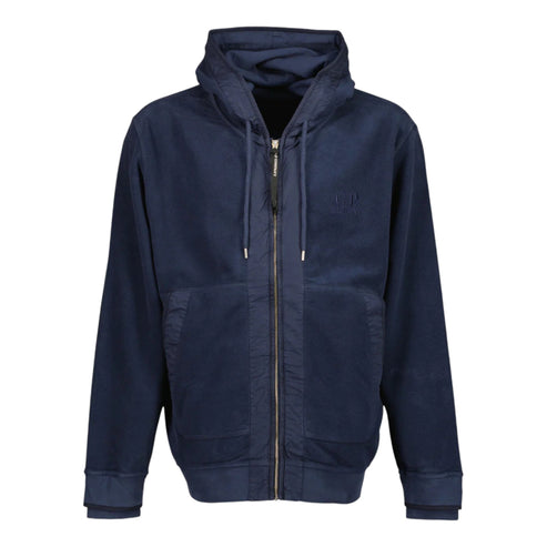 C.P. Company Embroidered Logo Brushed Peacock Dark Blue Hoodie