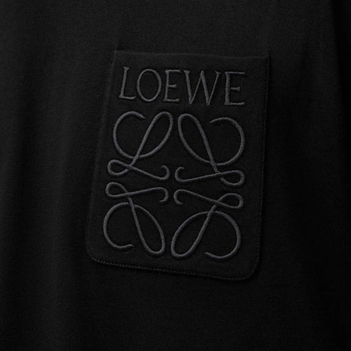 The Loewe Tonal Logo Relaxed Fit Black Pocket T-Shirt offers a perfect blend of comfort and understated style. Crafted from a premium blend of 99% cotton and 1% elastane, it provides a soft, breathable feel with just enough stretch for ease of movement. The relaxed fit ensures a casual, laid-back silhouette, while the subtle tonal embroidered logo adds a refined touch of luxury. Designed with a practical chest pocket, this tee combines functionality with fashion. Made in Portugal with high-quality craftsmanship, it’s an essential piece for those who value both comfort and sophisticated design in their wardrobe.