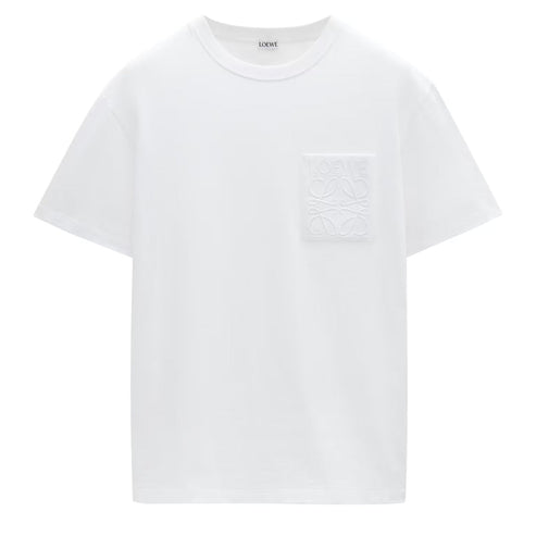 The Loewe Tonal Logo Relaxed Fit White Pocket T-Shirt combines effortless style with exceptional comfort. Crafted from a soft blend of 99% cotton and 1% elastane, it offers a relaxed fit that moves with you throughout the day. Featuring delicately embroidered branding and a practical chest pocket, this shirt adds a subtle yet refined detail to your wardrobe. Made in Portugal with attention to quality, it ensures durability and a premium feel. Perfect for casual outings or layering, this T-shirt effortlessly elevates your everyday look with understated luxury and lasting comfort.