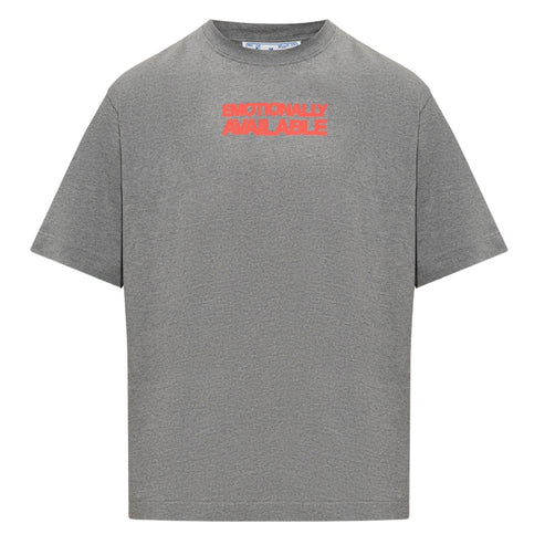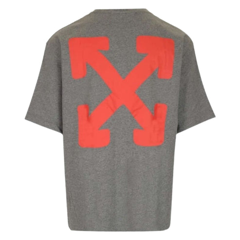 Stay stylish with this Off-White Over Skate Fit T-shirt. Featuring an iconic logo on the chest, this Tee is sure to be a conversation starter. Show off your unique style!, Iconic Logo On Front and Back, Arrow Design, Off-White Grey Tee, 100% Cotton, Made In Portugal, Crew Neck, Streetwear, Short Sleeve, Grey Tee