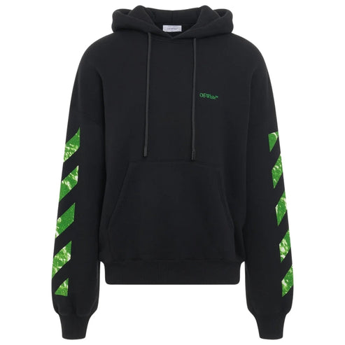 Off White Moon Tab Design Oversized Fit Black Hoodie