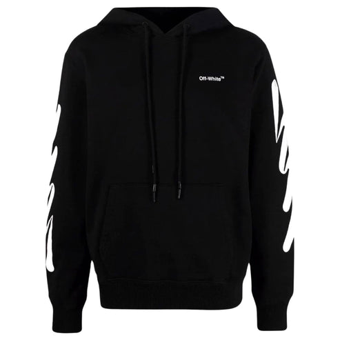Stay warm and stylish with this Off-White Hoodie. Featuring a contemporary design and the iconic Logo, this hoodie is sure to be a conversation starter. Show off your unique style!., Diag Design Down Arms, Drawstring Adjustable Hood, Large Front Kangaroo Pocket, Slim Fit, 100% Cotton, Made In Portugal, Streetwear, Black Hoodie, Hooded Jumper
