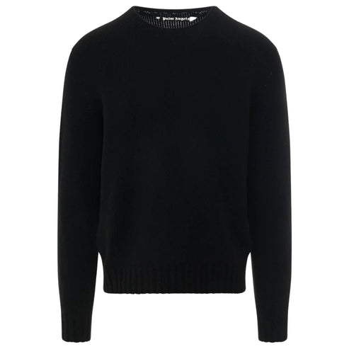 Experience cozy comfort and casual sophistication with the Palm Angels Crewneck Black Sweater. Adorned with a stylish logo, this ultra-soft sweater is designed to offer all-day warmth and timeless style. Make a statement with this relaxed-fit sweater, perfect for everyday wear!, Regular Fit, Black Jumper, Palm Angels Curved logo Print Design, Black Knittwear Jumper, 80% Wool, 20% Polyamide, Made In Italy, Elasticated Waistband and Sleeve Endings, Black Knitwear