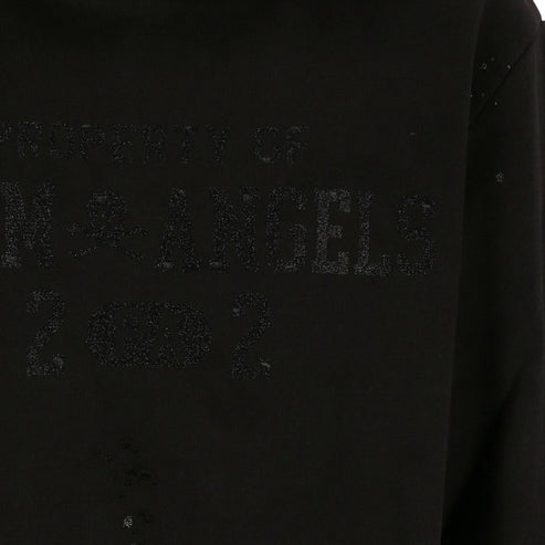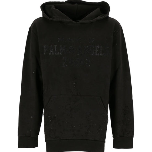 Palm Angels Damaged Logo Black Hoodie. This Palm Angels hoodie is sure to become your go-to staple. Featuring a Lurex Logo it brings a unique twist to the classic black hoodie. Bold and stylish, it lets you express your individual style. Be ready to stand out and add some extra edge to your wardrobe!. Regular Fit, Fits True To Size. Brand Logo On Chest. 100% Cotton, Made In Italy. Style Code: PMBB117S22FLE0011010