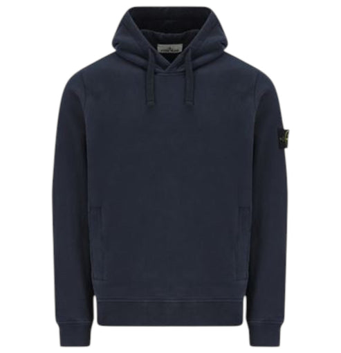 This Stone Island hooded sweatshirt is crafted from brushed organic cotton fleece for exceptional softness and warmth. Featuring a regular fit, it includes a pouch pocket with ribbed trim and a jersey-lined hood for added comfort. Ribbed side bands enhance shape retention, while the garment-dyed finish offers a subtle, rich navy blue tone that deepens with wear. Ideal for layering, this sweatshirt combines sustainable materials with refined construction for enduring style and comfort.