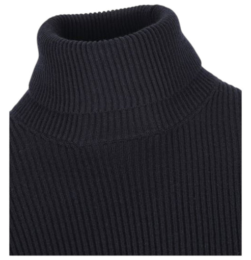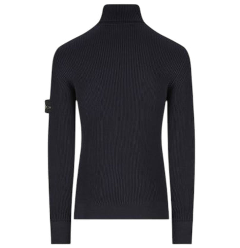 Stone Island, Navy Blue Full Rib Wool Turtleneck Jumper